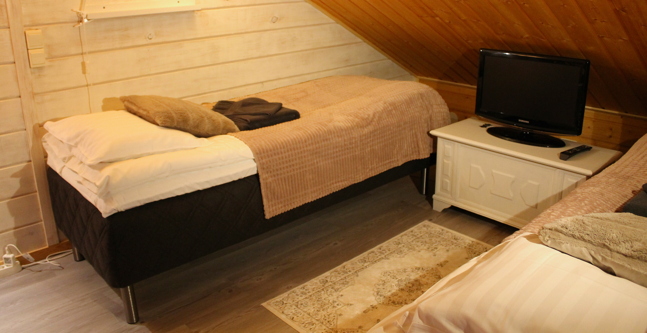 Alakerran makuuhuoneessa on kaksi 80 cm sänkyä.